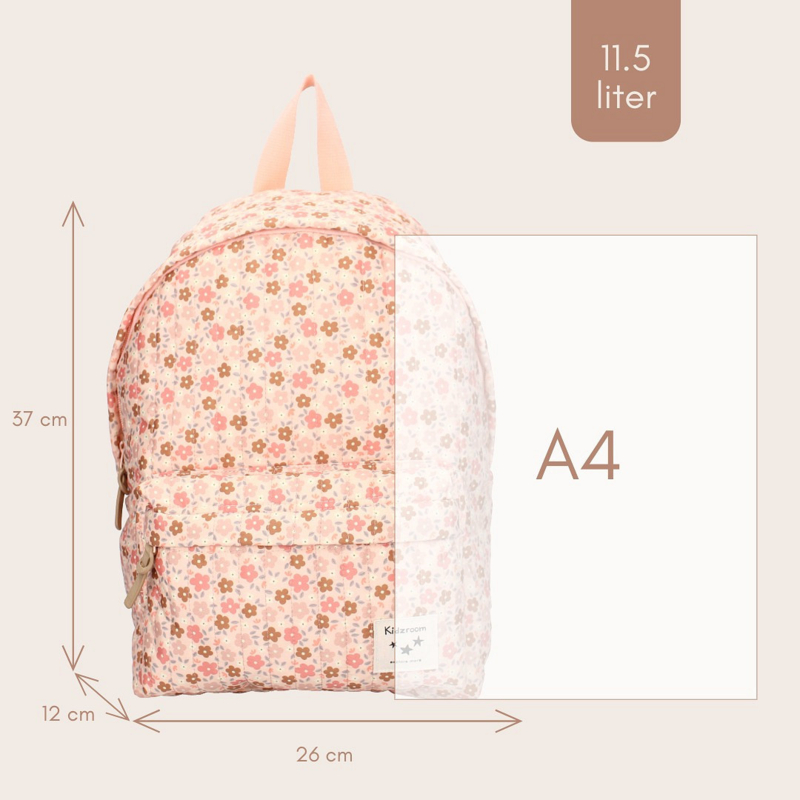 Dit schattige rugzakje van Kidzroom is perfect voor elk avontuur! De rugzak uit de betoverende 'Magical Meadows' collectie zal ongetwijfeld het favoriete accessoire van je kindje worden. De rugzak is zachtroze en heeft een bloemetjesprint.