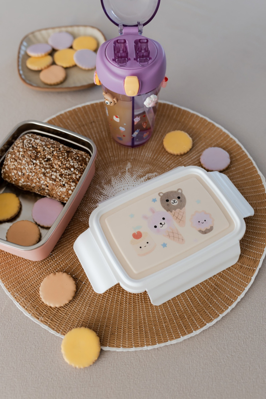 OverzichtMet deze mega schattige lunchbox van Petit Monkey maak je écht de blits! Op het deksel worden schattige ijsjes afgebeeld.