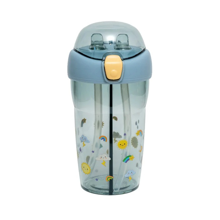 OverzichtDeze 2 in 1 drinkfles van Petit Monkey tovert meteen een glimach op je gezicht dankzij alle leuke afbeeldingen met onder andere zonnetjes, wolkjes en regenbogen! Met de bijgeleverde 3D stickers in de vorm van een visje, regenboog, wolk en pinquin kun je de drinkfles nog eens extra versieren!
