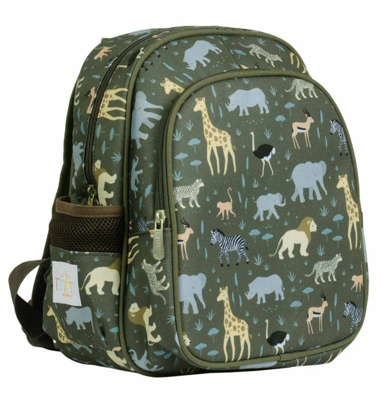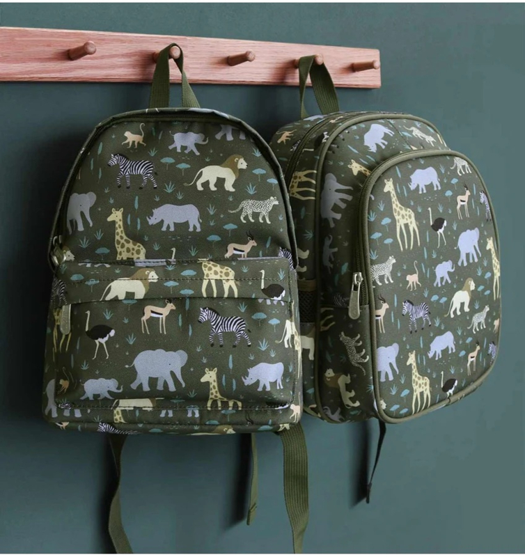OverzichtDeze handige, groene rugzak met dierenprint is ideaal om mee te nemen naar school of op reis. De kinderrugzak van A Little Lovely Company heeft een ruim hoofdcompartiment, een geïsoleerd voorvak en twee open zijvakken; groot genoeg voor een broodtrommel, een snacktrommel en een drinkfles.