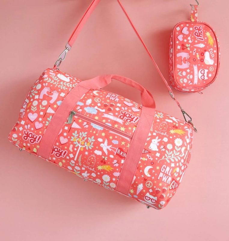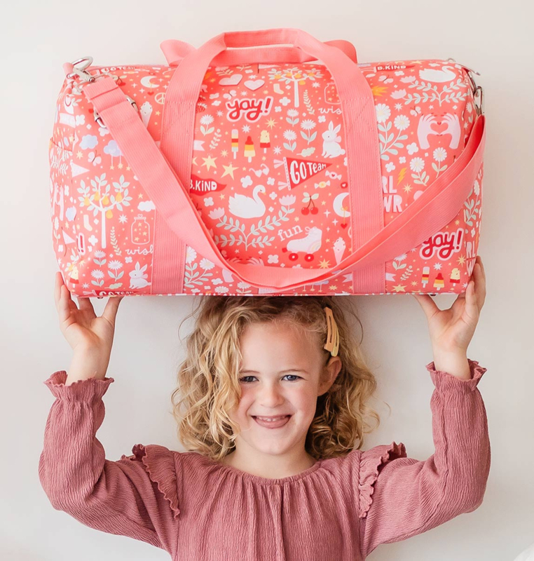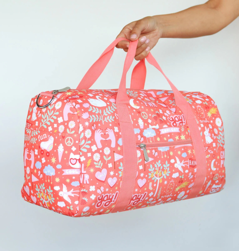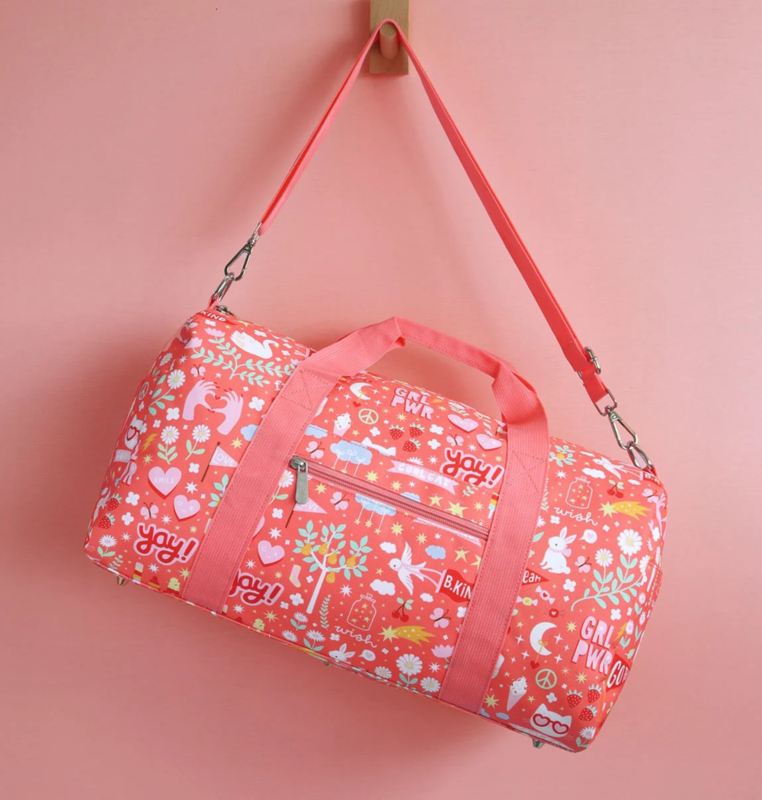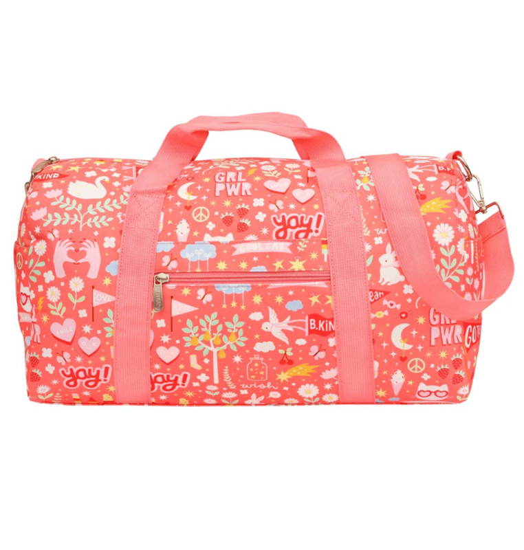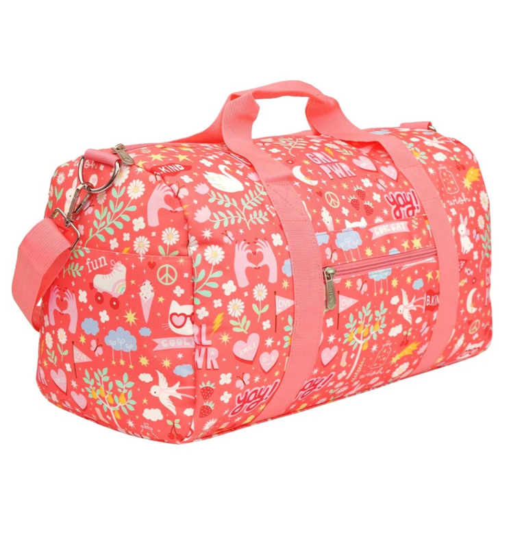 OverzichtDeze ruime, roze weekendtas met vrolijke print is ideaal om mee te nemen op vakantie, naar logeerpartijtjes of als sporttas. De tas is ook geschikt als handbagage, check hiervoor wel altijd eerst de richtlijnen van de luchtvaartmaatschappij.