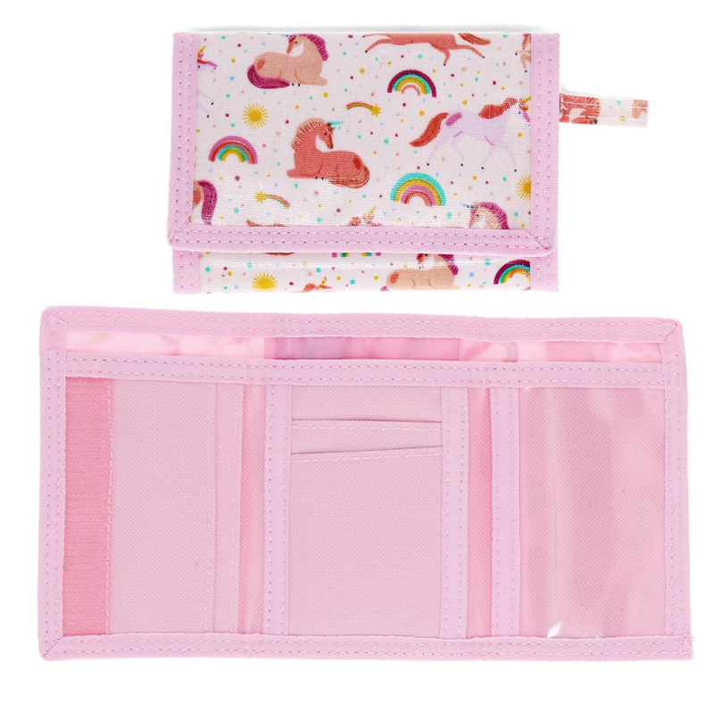OverzichtBewaar je (zak)geld veilig in deze stijlvolle kinderportemonnee van Rex London. De portemonnee heeft een vrolijke print met eenhoorns, regenbogen en sterren.