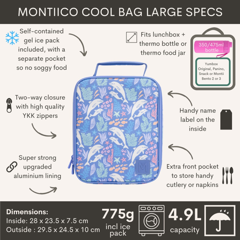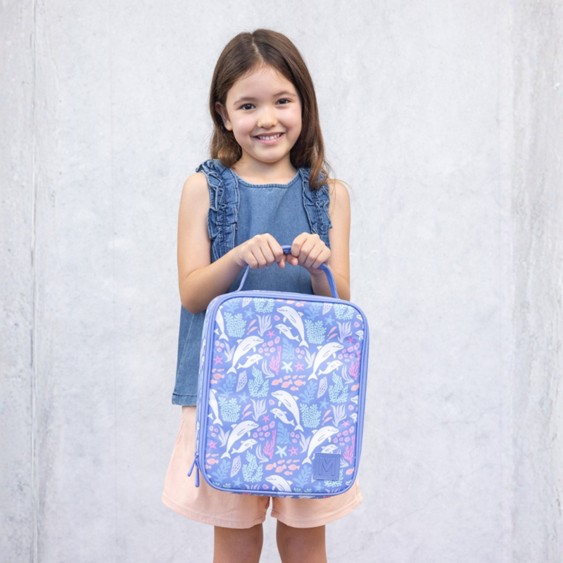 OverzichtHoud je lunch vers én gekoeld met deze koeltas van MontiiCo. Deze lunchtas met prachtige dolfijnenprint is een feestje voor het oog, maar ook nog eens erg praktisch.