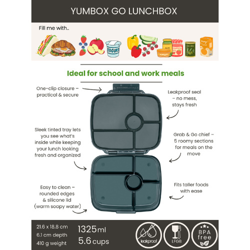 De Yumbox Go is perfect voor grotere eters of iedereen die nét wat meer ruimte nodig heeft in een compacte lunchbox!