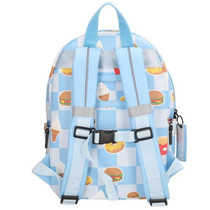 OverzichtRugzak Levi van ZEBRA is een trendy en praktische tas voor kinderen die graag een vrolijke rugzak mee willen nemen. Of je 'm mee naar school neemt, of als je een dagje uit gaat, deze toffe rugzak springt altijd in het oog! De rugzak is lichtblauw/wit geblokt en heeft een toffe fast food print met hamburgers, frietjes, donuts en ijsjes.