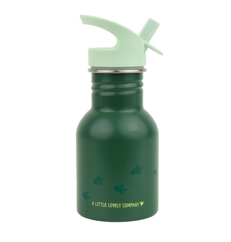 Deze kleine roestvrijstalen drinkfles uit de mini collectie van A Little Lovely Company is perfect vast te houden door jonge kinderen met kleine handjes. De drinkfles is enkelwandig en heeft een inhoud van 350 ml. De drinkfles is groen gekleurd en er wordt een dinosaurus op afgebeeld.