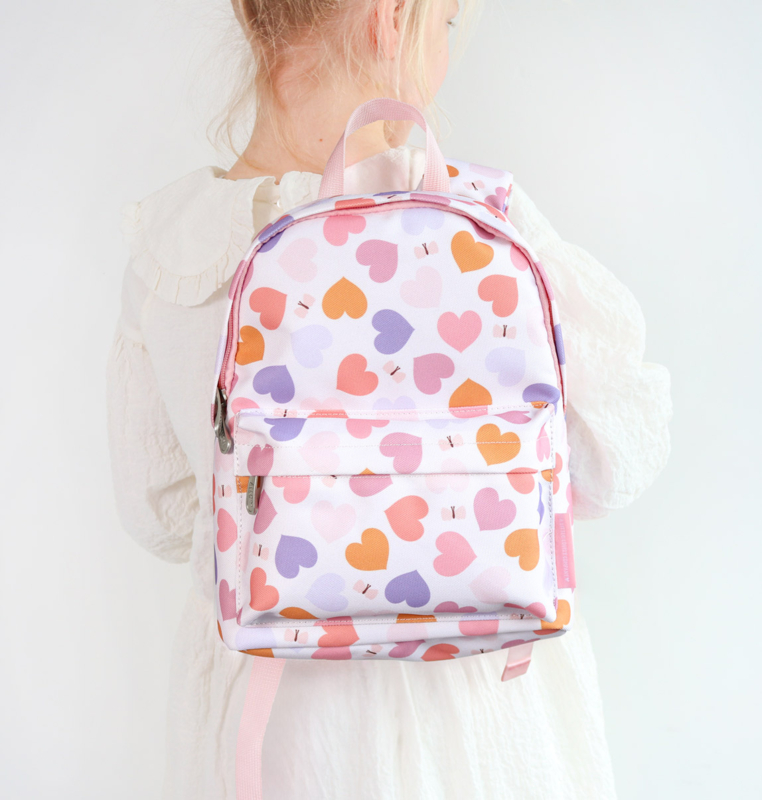 Hartjes, hartjes en nóg meer hartjes! Van dit leuke rugzakje van A Little Lovely Company word je toch meteen blij?!