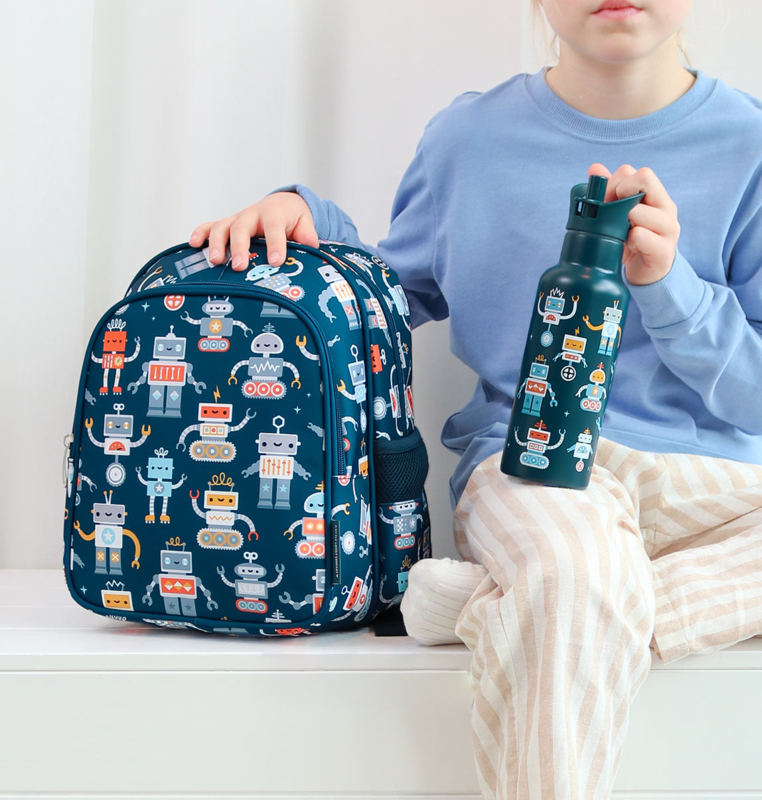 Maak je 'Robots' set compleet met een bento lunchbox, een set lunch- en snackboxen en een drinkfles van A Little Lovely Company. Ben je op zoek naar een kleinere rugzak? Bekijk dan het A Little Lovely Company Rugzakje Robots.