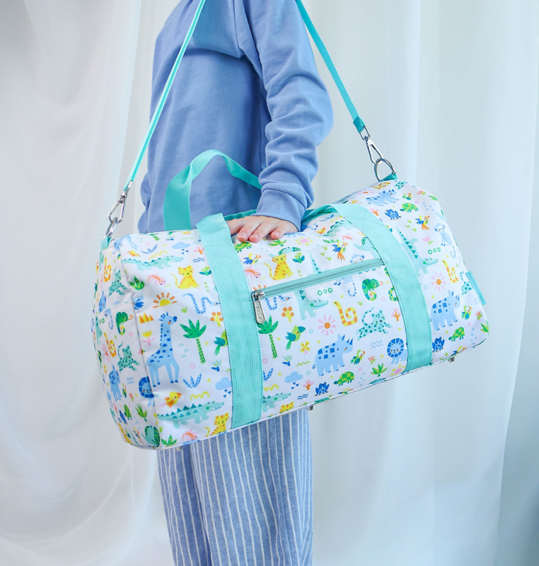 OverzichtDeze ruime weekendtas met jungledieren is ideaal om mee te nemen op vakantie, naar logeerpartijtjes of als sporttas. De tas is ook geschikt als handbagage, check hiervoor wel altijd eerst de richtlijnen van de luchtvaartmaatschappij.