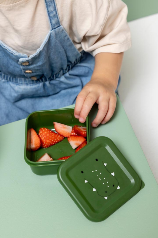 Deze 3-delige set snackboxen van Trixie is ideaal om je tussendoortjes in mee te nemen. Vul ze met je favoriete snacks en neem ze bijvoorbeeld mee naar school voor het '10-uurtje'. Kleine handjes krijgen de deksels makkelijk open. Elke snackbox heeft z'n eigen afbeelding op het deksel van dierenvriendje Mr. Alligator.