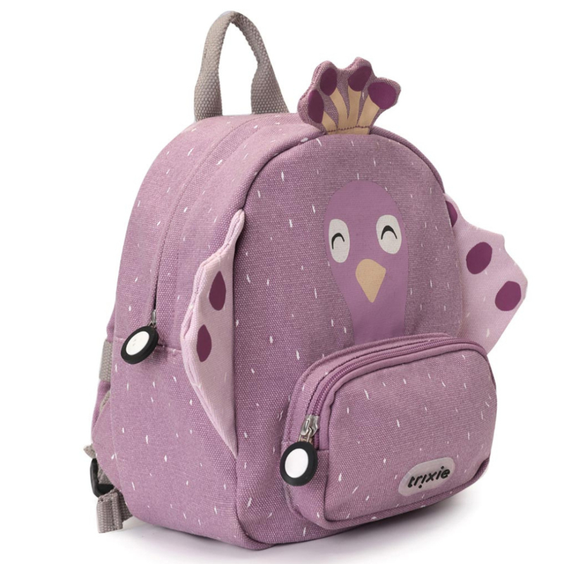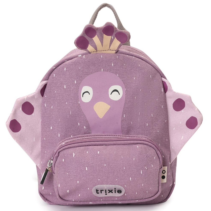 Dit is Mrs. Peacock! Door haar mooie koppie en prachtige kleuren kun je niet om haar heen! Doe al je spullen in deze geweldige rugzak van Trixie en ga op avontuur!