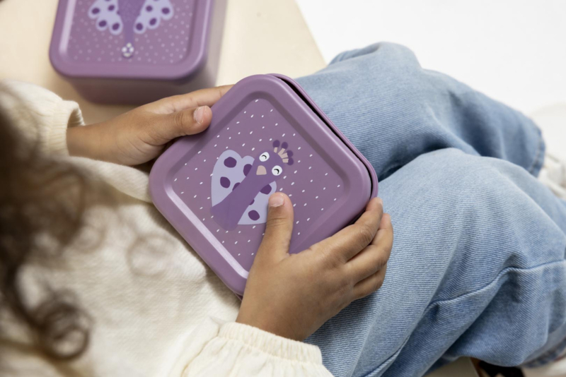 Deze 3-delige set snackboxen van Trixie is ideaal om je tussendoortjes in mee te nemen. Vul ze met je favoriete snacks en neem ze bijvoorbeeld mee naar school voor het '10-uurtje'. Kleine handjes krijgen de deksels makkelijk open. Elke snackbox heeft z'n eigen afbeelding op het deksel van dierenvriendinnetje Mrs. Peacock.