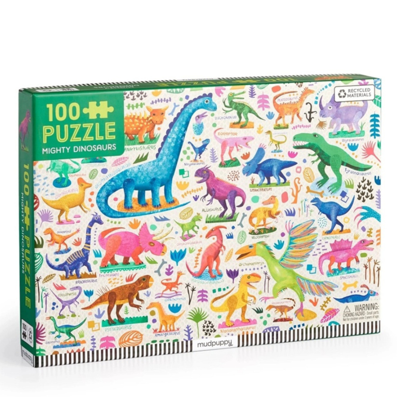 Mudpuppy Puzzel Mighty Dinosaurs - 100 stukjesGa op een prehistorisch avontuur met deze boeiende dinosauruspuzzel van Mudpuppy! Deze puzzel is speciaal ontworpen voor kleine dinofans. Er zijn veel verschillende dinosaurussen op te zien, elk voorzien van de naam.